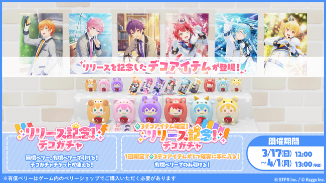 リリースを記念し、本日3月17日(日)より「リリース記念!デコガチャ」と「?3デコアイテム確定!リリース記念!デコガチャ」を開催いたします。