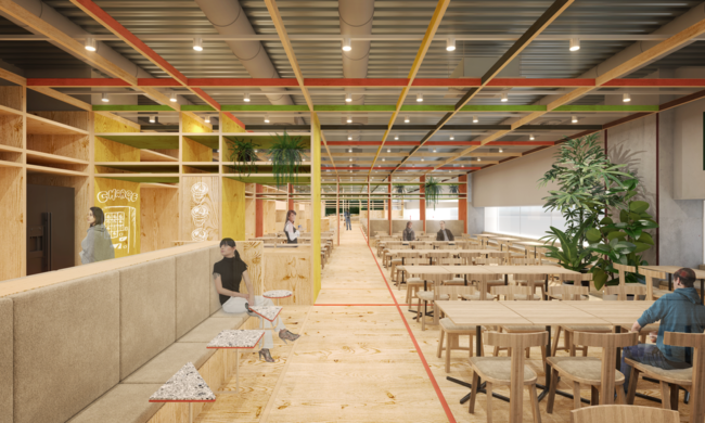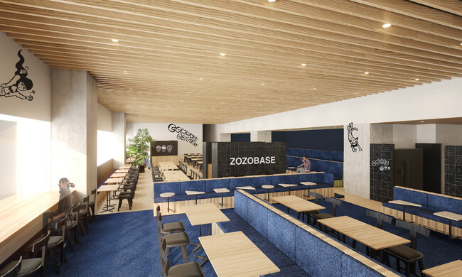 「ZOZOBASEつくば3」には、ファッションをテーマに、コンセプトの異なる2つの休憩室を設けます。1Fの休憩室は「デニム」を、5Fの休憩室は「プレイド(格子柄)」をコンセプトに、それぞれ色使いや導線などに工夫を凝らすことで、働くスタッフが快適に過ごせる環境を整備します(※3)。