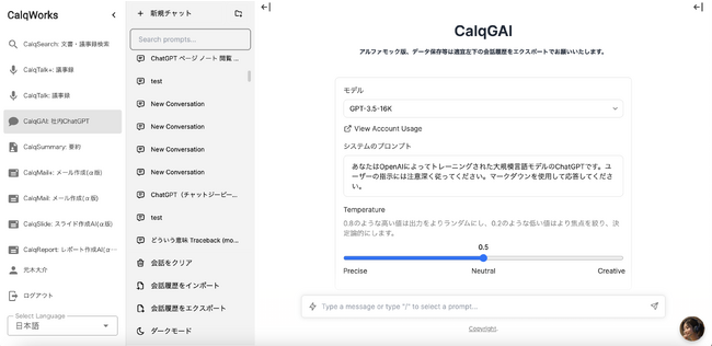 「共創の基盤を創る」をミッションにジェネレーティブAIや量子コンピューターによるDX事業に強みを持つ、株式会社KandaQuantum(本社:東京都千代田区、代表:元木大介、以下「KandaQuantum」)のCalqWorksはビジネス統合GAIのプラットフォームであり、数々のAI製品が提供されています。今回GPT-3.5 16KトークンがCalqGAIに追加され、自由に使える新機能が登場しました。
