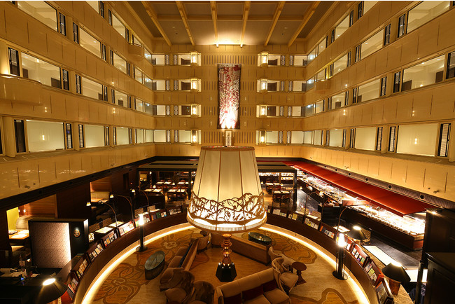 ホテルのシンボル「かんじんの京灯り」を中心に広がるノスタルジックモダンな空間は、数々の空間アワードを受賞。