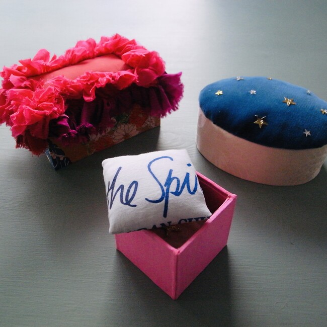 厚紙を切って組み立てた箱に布や紙を巻いて仕上げるヨーロッパの伝統工芸です。色生地や古い着物・スカーフ生地などの中から、お好きな組み合わせで6.5cmの正方形の小物入れを作ります。