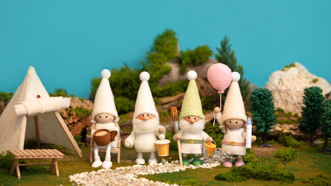 イルムス限定キャンプコンプリートセットは、キャンプを楽しむニッセたちと一緒に飾れるオリジナル家具がセットになっています。ニッセと一緒に飾ることで、キャンプ気分を盛り上げる「テント」と「アウトドアテーブル」「アウトドアチェア」を制作いたしました。家具はすべて、デザイン性だけでなく折りたたんで収納できるよう機能性にもこだわった、イルムスの自信作です。「アウトドアテーブル」「アウトドアチェア」は、キャンプコンプリートセットでしか手に入れることのできない、限定アイテムとなっています。