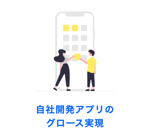 2021年より、アプリグロース支援を専任で行う「グロースハック事業部」が設立されました。納品して終わりではなく、納品後に様々な角度からお客様のアプリの分析・運用をサポートし、アプリの価値を高めてパートナーの事業成長を実現するための対策を実施いたします。
