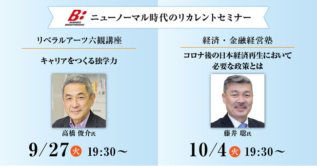 BBT 『ニューノーマル時代のリカレントセミナー』開催 "キャリアをつくる独学力"、"日本経済再生"をキーワードとする2つのセミナーが受講可能