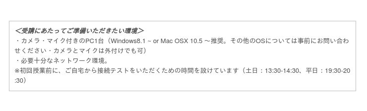 ※休業日を除く平日19:30〜20:30、土日18:30〜19:30に自由質問時間あり
