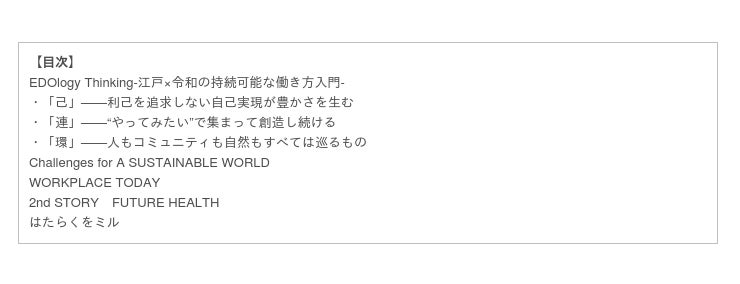 江戸の人々の暮らしに目を向けることは、令和の時代に循環型社会を実現するアイデアを得るきっかけのひとつになるはずです。本書では、働くということと働く場所について考え続け、海外の先進事例を取り上げてきたWORK MILLが、初めて時を遡り、学ぶべき“本質”に迫っています。