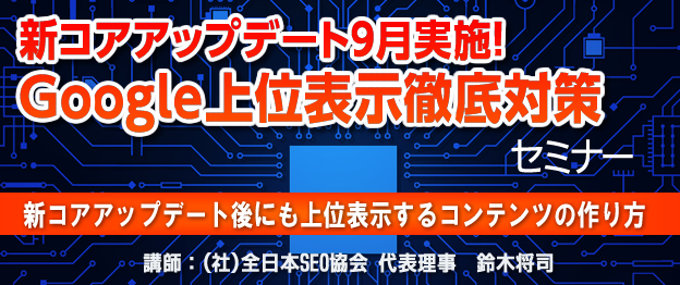 『 新コアアップデート9月実施!Google上位表示徹底対策』セミナー をZoom・全国4箇所で開催