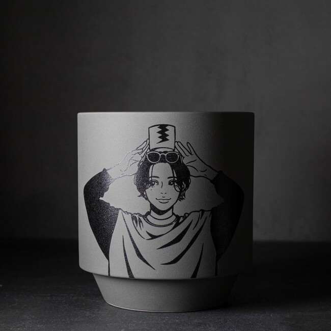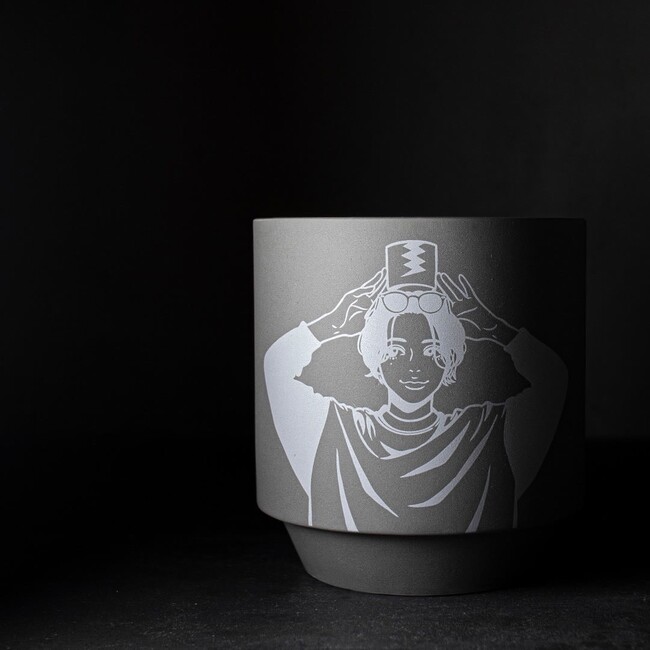 「青坊主」が「VALIEM」に製作を依頼した陶器鉢を女性が掲げたアートワークは、陶器鉢のカラーリングをリソースとしたモノトーンな仕上がりになっています。
