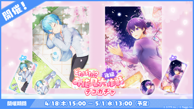 株式会社STPR(本社:東京都渋谷区、代表取締役:柏原真人、以下STPR)と株式会社flaggs(フラッグス)(本社:東京都品川区、代表取締役CEO:吉江直人)は、本日4月18日(木)にエンタメユニット「すとぷり」の公式ゲームアプリ「すとぷりWith!!(通称:すとうぃず)」のゲーム内イベント「どたばた!?お花見大作戦 後編」の開催についてお知らせいたします。