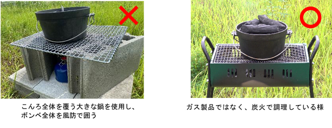〇カートリッジガスこんろを使って炭の火おこしをしない。
