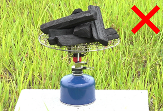 カートリッジガスこんろを用いて炭の火おこしをしてしまうと、炭の熱によってガスカートリッジが過熱され、内圧上昇によりガスカートリッジが破裂するおそれがあります。