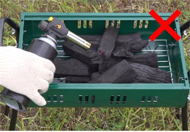 ガストーチで炭の火おこしをする際は、大きく傾けない。