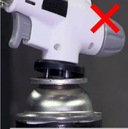 〇ガストーチを使用する際は、大きく傾けて使用しない。
