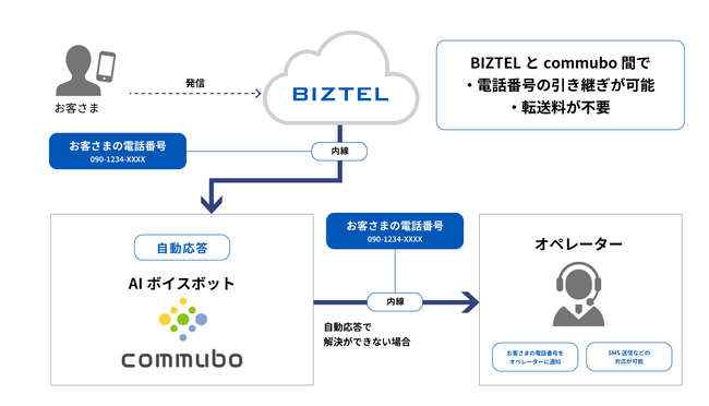 ※2 詳細はプレスリリース(クラウド型 CTI/コールセンターシステム「BIZTEL」と AI ボイスボット「commubo」が連携開始)をご覧ください。