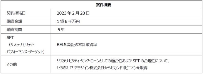広島銀行の「サステナビリティ・リンク・ローン」は、企業がESG・SDGs に関する目標を設定し、達成した場合に金利が引き下げられ、設定した目標等にかかる外部レビューと年1回のレポーティングが必要となるサステナブルローンです※。2022年1月に当社「区分所有オフィス」の「VORT(R)」シリーズ20物件について、建築物省エネルギー性能表示制度 BELS認証(Building-Housing Energy-efficiency Labeling System)を取得し、環境不動産(グリーンビルディング、ESG不動産)の促進にも注力していることが、今回の資金調達における評価につながりました。※広島銀行のサステナブルローンについては別紙1参照