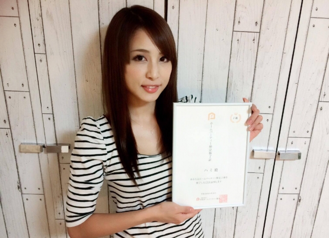 ハミさんは、2015年まで3人組ボーカルユニット『Juliet』のメンバーとして活動。現在はフリーで、コラム執筆や、スイーツのワークショップ、カフェのプロデュース他、料理動画やメイク動画の配信等も行なっています。日本ホームパーティー協会では、こうした活動と功績を評価し2016年8月に「ホームパーティーアンバサダー」に任命しました。その活動の第一歩として、「ホームパーティー検定」の2級試験に挑戦。3時間の講習と、ペーパーテスト、実技試験をクリアして「ホームパーティー検定」2級の資格を取得されました。