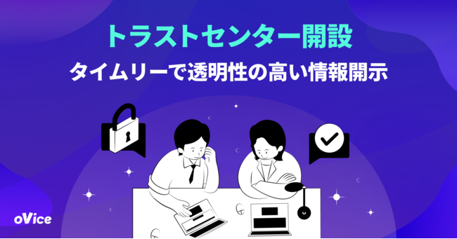 oVice株式会社(本社:石川県七尾市、代表取締役CEO:ジョン・セーヒョン)は、ユーザーの皆さまにより安心してサービスをご利用いただくため、当社のセキュリティ、プライバシーなどの各種ポリシーやシステム稼働状況、エンジニアブログなどを一箇所に集約したサイト「トラストセンター」を2022年10月21(金)に正式開設しました。今後も、タイムリーな情報を正確にお伝えするためコンテンツを拡充し、バーチャル空間「oVice(オヴィス)」というインフラをより安心してご利用いただける環境を構築していきます。