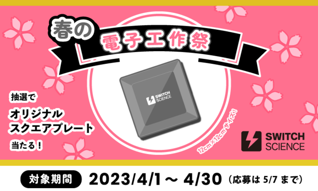 株式会社スイッチサイエンス(以下スイッチサイエンス、本社:東京都新宿区、代表取締役:金本茂)は、2023年4月1日より2023年4月30日までの1ヶ月の間の1回5,000円以上のお買い物でスイッチサイエンス オリジナル角皿が当たるプレゼント企画に応募できる『春の電子工作祭り2023』を実施します。