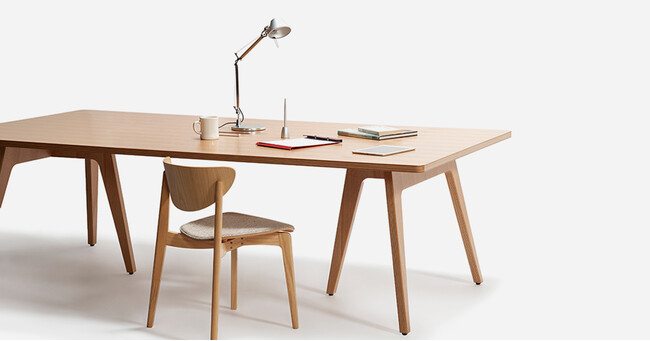 今回は、オリジナルオフィスプロダクト『WEDGE(ウェッジ)』シリーズとして、木部に国産木材を100%使用したテーブル、デスクとオフィスアイテム、組み合わせて使えるようデザインしたプロダクトを発表します。
