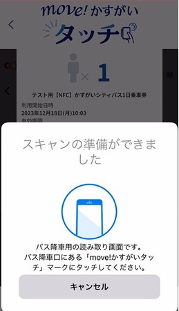 専用アプリ「move!かすがいタッチ」をダウンロードしタッチ認証対象の乗車券を購入の上、バス車両内のタッチプレートの「読み取りマーク」に端末をタッチして乗降車できます。