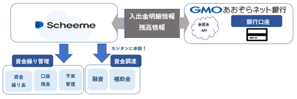 GMOあおぞらネット銀行株式会社(以下、当社)は、Scheeme株式会社が提供する資金繰りから資金調達までをクラウドで一括管理できるソフトウエアサービス「Scheeme(スキーム)」と、当社が提供する参照系API(*1)との公式連携を1月20日より開始いたします。