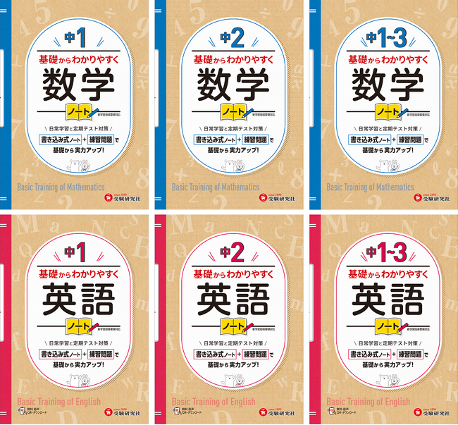 数学・英語が苦手と感じる中学生へ。“要点・解く手順・練習”の基礎学習ステップを「書き込み式ノート+問題演習」で導く問題集『基礎からわかりやすく 数学/英語ノート』が新登場!