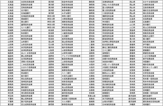 ※公表前の一部の提携金融機関は、一覧から除いています。