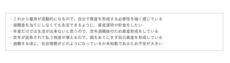 定年退職後のための資産形成に関するコメントが顕著に見られました