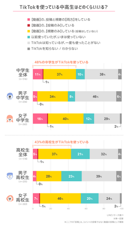 【LINEリサーチ】中学生の半数弱、高校生の約4割がTikTokを利用。よく見るジャンルは男女/年代で異なる結果に