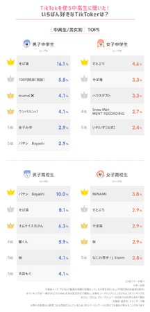 TikTokを使っている中高生がいちばん好きなTikTokerは?