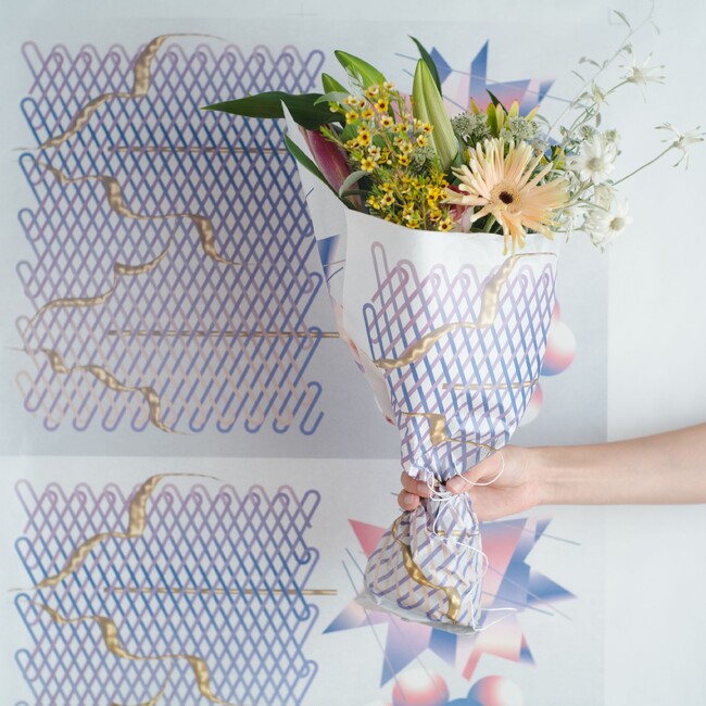 花の「循環」「つながり」をイメージしてUESATSUさんが描き下ろしたew.noteオリジナルラッピングペーパー。
