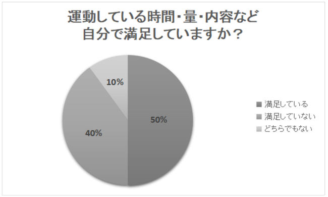 最後に、「日頃運動している時間・量・内容など自分で満足していますか?」というアンケートを行いました。すると、半数の人が「満足している」と回答したのです。