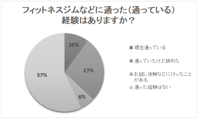 主に、自宅で体を動かしていると答えた人も、定期的に体を動かしている人は、フィットネスに通った(通っている)経験を持っているのでしょうか?続いて、「フィットネスジムなどに通った(通っている)経験はありますか?」という質問も行いました。