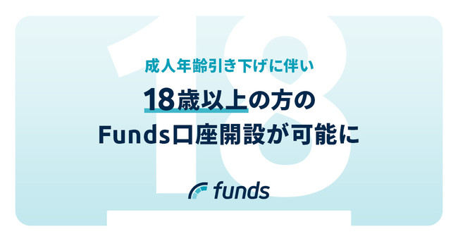 成人年齢引き下げに伴い、18歳以上の方のFunds口座開設が可能になります