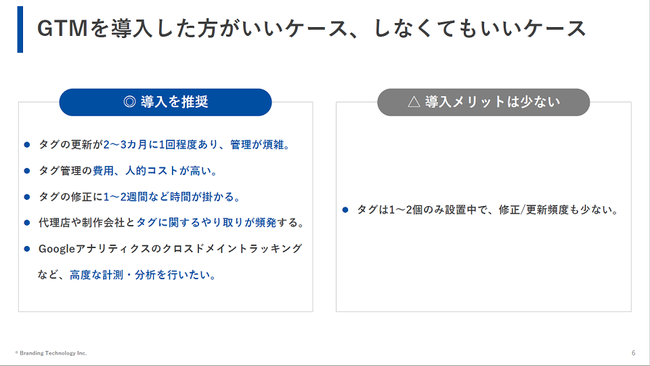ブランディングテクノロジー株式会社(代表取締役社長:木村 裕紀、本社:東京都渋谷区、証券コード7067、以下当社)は、中小・中堅企業様のデジタルマーケティング支援を目的とした『Googleタグマネージャ入門 導入→基本のタグ設定ガイド』を無料配布いたします。