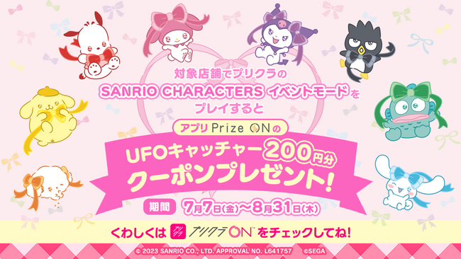 ■対象店舗でプリクラの『サンリオキャラクターズ』イベントモードをプレイすると、UFOキャッチャー(R)がおトクに遊べるアプリ「Prize ON」のクーポンがもらえるキャンペーンも開催!