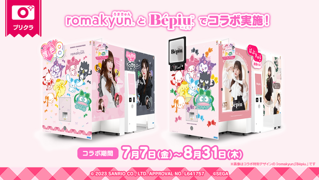 本コラボイベントでは、『サンリオキャラクターズ × romakyun』を「プライズ」「Prize ON」「プリクラ」にて全国のゲームセンターで展開いたします。「プライズ」では「サンリオ」人気キャラクターのコラボ限定描き下ろしデザインを使用した、ぬいぐるみや雑貨が登場いたします。「Prize ON」では、UFOキャッチャー(R)をプレイして貯めたポイントをオリジナルグッズに交換するキャンペーンを開催。「プリクラ」では、好評稼働中『romakyun(ろまきゅん)』『Bepiu.(ベピウ)』にて、コラボ限定のスタンプやシールが登場。また、全国70店舗限定で外装デザインをコラボバージョンに変更した特別仕様のプリクラ機が設置されます。さらに、一部対象店舗では『サンリオキャラクターズ』イベントモードをプレイすると、「Prize ON」で使える「UFOキャッチャー(R)200円分のクーポン」がもらえるキャンペーンも開催!