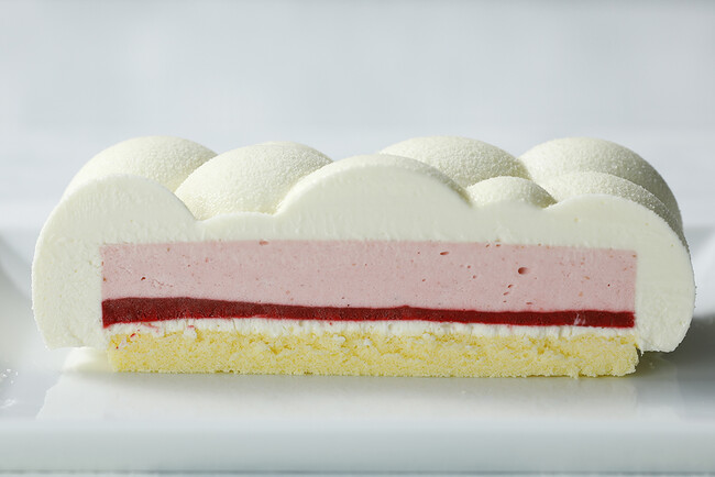 ふわふわの白い雪のような見た目は変えず、ケーキの味わいにこだわりを持ち、さらに進化させた鎌内。2022年は柚子とベリーの相性の良さに着眼しました。柚子ショコラのムースに、苺のムースとフランボワーズのジュレを閉じ込めることで、甘く口どけの良いチョコレート、爽やかな柚子とベリーが絶妙にマッチ。シェフパティシエールの感性が光り、わくわくするケーキが、特別な楽しいひとときを演出します。