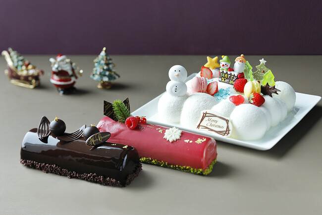 今年のクリスマスにご用意するケーキは全部で3種類。ホテル開業後初となる2020年の販売開始以来、3年連続の登場で定番のDIYケーキ“プレザント”と、伝統的なクリスマスケーキでシックな装いの“ブッシュ・ド・ノエル”。