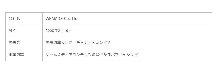 WEMADE Co., ltd.(以下WEMADE、本社:韓国、京畿道城南市、代表取締役:チャン・ヒョングク)は2000年2月10日に設立されたPCオンラインゲーム及びモバイルゲームの開発/運営会社であり、「ICARUS ONLINE」、「ICARUS M」など多数のタイトルを開発し、サービスを行った会社です。