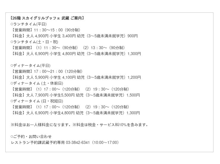 26階 スカイグリルブッフェ 武藏