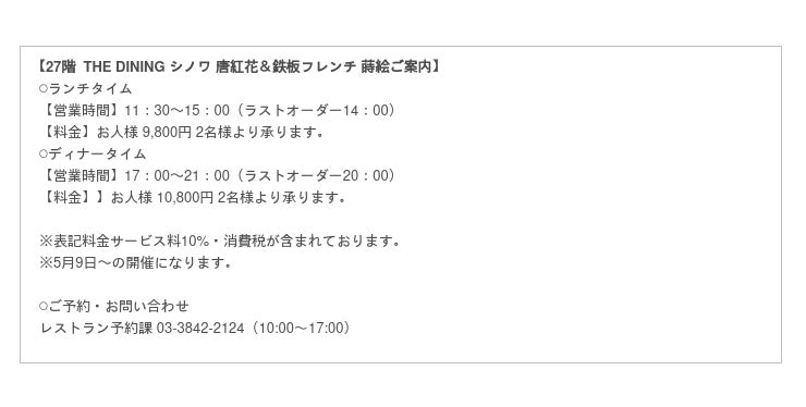 27階 THE DINING シノワ 唐紅花&鉄板フレンチ 蒔絵