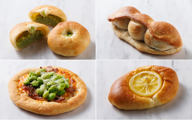 ○新潟フェア販売ブレッド 新潟産米粉のずんだあんぱん ¥280 塩枝豆ぱん ¥380 グリーンソイベーコン ¥400 ずんだレモンクリームチーズ ¥350 米粉のせんべいパン ¥150 越後姫のいちごデニッシュ ¥450 にいがた和牛のビーフカレーパン ¥800 新潟名物栃尾のあぶらげのカンパーニュ ¥800