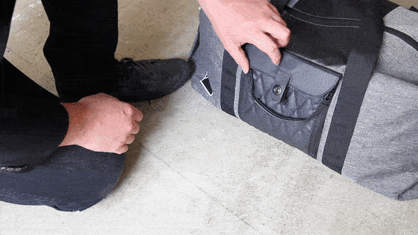 シューズコンパートメントは「デュアル・クイック・ジッパー」&マグネット式スナップボタン採用で素早くアクセスできます。