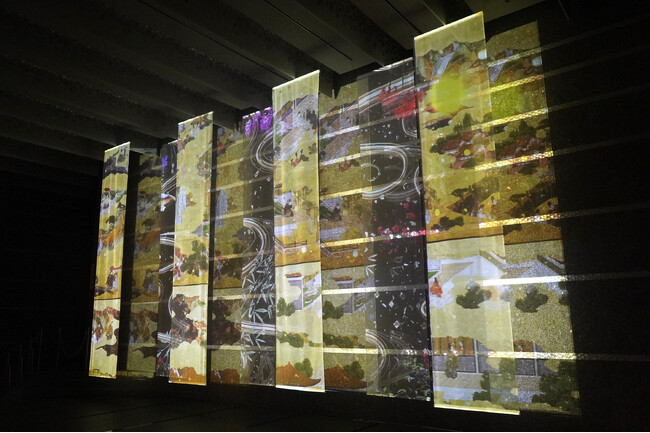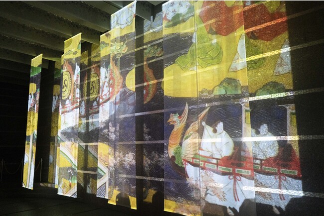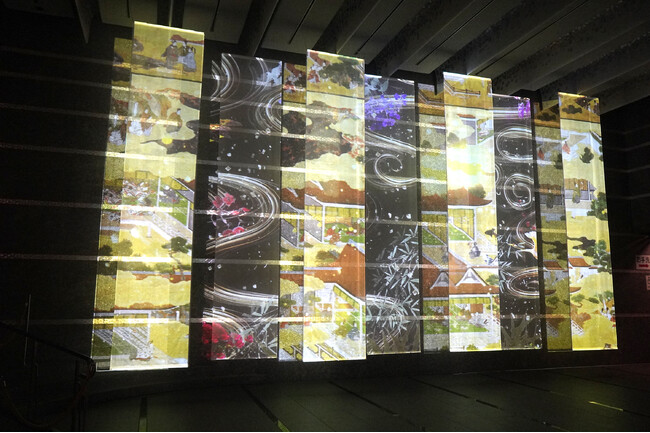 斎宮歴史博物館のエントランスホールに博物館が所蔵する「伊勢物語図屏風」や「斎王群行絵巻」などをモチーフにしたデジタルアート作品を展示しました。