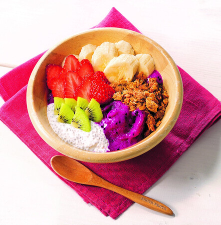 3. 2.を器に盛り付け、フルーツやグラノーラをトッピングして出来上がり