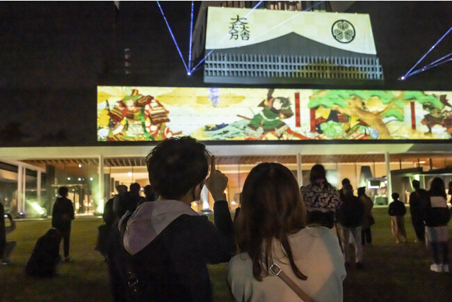 2020年に開館した岐阜関ケ原古戦場記念館の建物に、関ケ原町歴史民俗学習館が所蔵する「関ヶ原合戦図屏風」が躍動するデジタルアニメーションをはじめ、岐阜関ケ原古戦場記念館が所蔵する「徳川二十将図」や「太平記英勇伝」など、日本の歴史や文化をモチーフにしたダイナミックなデジタルアートコンテンツのプロジェクションマッピング映像を投影しました。