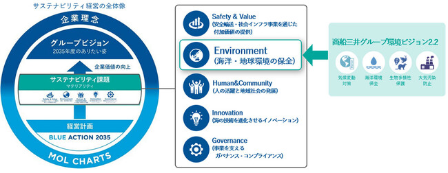 本件はグループビジョンに加え、経営計画「BLUE ACTION 2035」で掲げる非海運事業の拡大、「商船三井グループ 環境ビジョン2.2」の戦略の一つ「グループ総力を挙げた低・脱炭素事業拡大」にも合致する取り組みです。商船三井グループは、人・社会・地球のサステナブルな発展に貢献し、青い海から豊かな未来をひらきます。