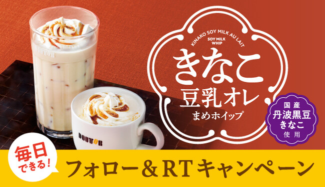 ドトールコーヒーTwitterキャンペーン QUOカードPay100円分が500名様に当たる「きなこ豆乳オレを楽しもう!フォロー&リツイートキャンペーン」を開催!