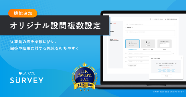 ラフールサーベイ、従業員の声を柔軟に拾い、回答や結果に対する施策を打ちやすくする新機能「オリジナル設問複数設定」をリリース